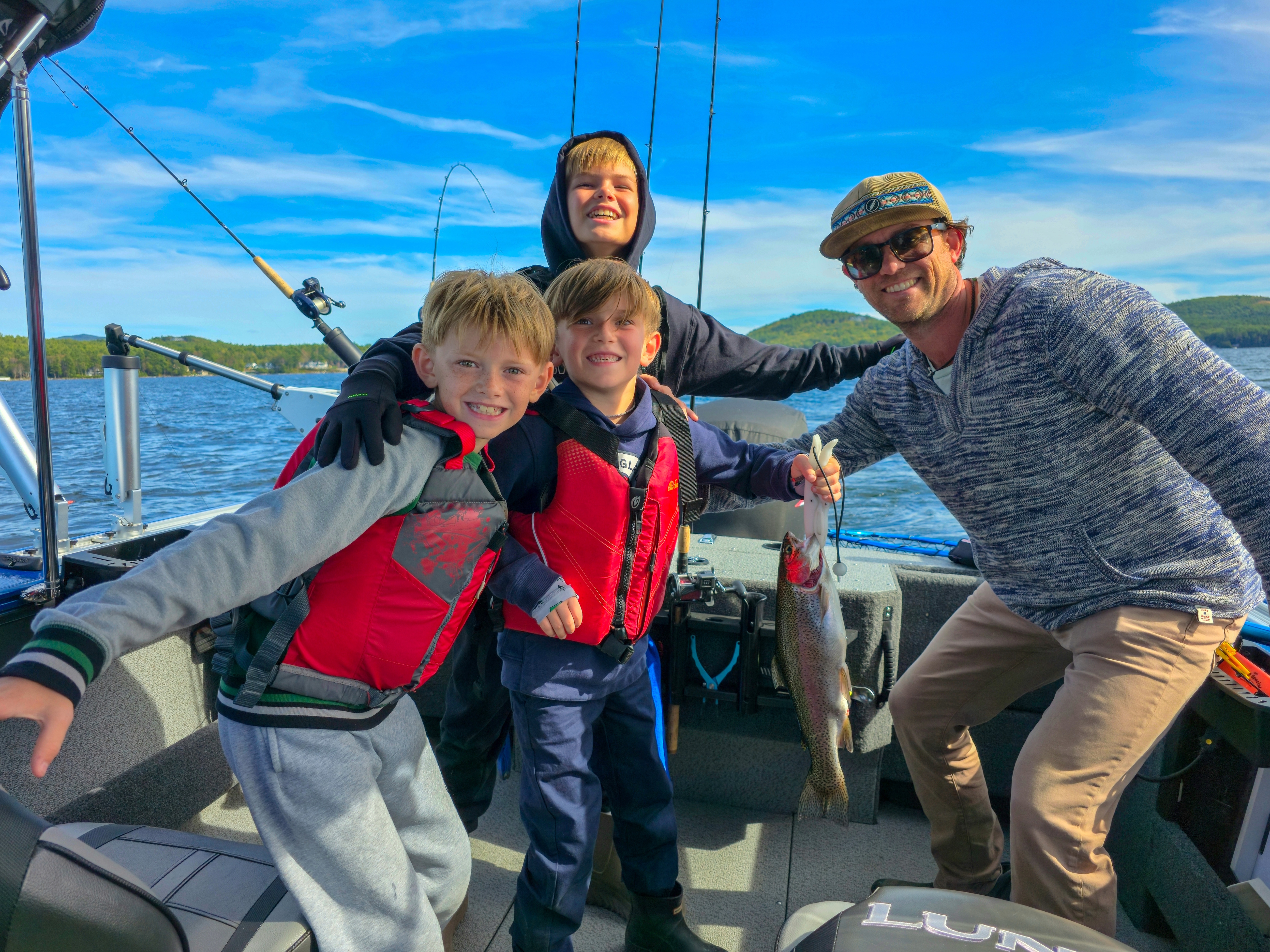 Tim from Tim Moore Outdoors/Lake Winnipesaukee Fishing Guide Service on Lake Winnipesaukee says that the late season trolling on Winnipesaukee is as good as it gets most days. The jigging is hanging in there, but still way down from what they used to see before the appearance of spiny water fleas in the lake. “The salmon and rainbow fishing are excellent most days. We are seeing double digit numbers of 2 and 3 year old salmon, and rainbows averaging 4 pound. The weekend cold front slowed things down a bit, but we still picked away at fish. We are down 30 and 40 feet trolling mostly streamer flies with orange and yellow, and some days purple. The Tommy Gun spoons in Blood and Guts have been good too. Lake trout jigging is okay most days. Cold front conditions over the weekend pushed a lot of fish out of the basins for a couple days and the presence of spiny water fleas is still making the bite sluggish. A lot of the lake trout are filling up on them and getting full, but the lack of nutrition is making them skinny. We did land a healthy 5-pound lake trout last week, so they are still around. Most metal jigging spoons, especially ones that glow, around ¾-ounce are working well. We are into the last week of the salmon and lake trout season on Winnipesaukee for me and there is no sign of things slowing down,” he said.